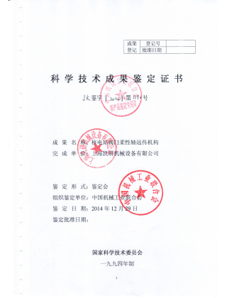 科學技術成果鑒定證書(五防鎖)